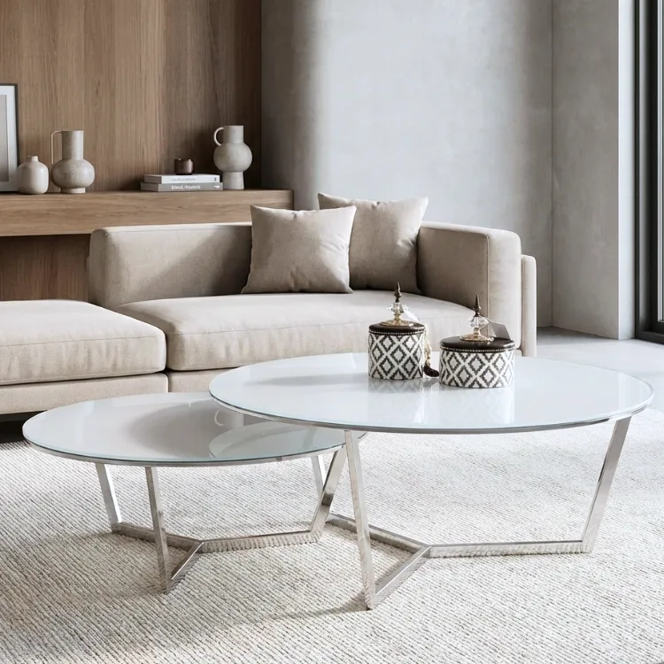 סט 2 שולחנות סלון דגם 325 כסוף לבן