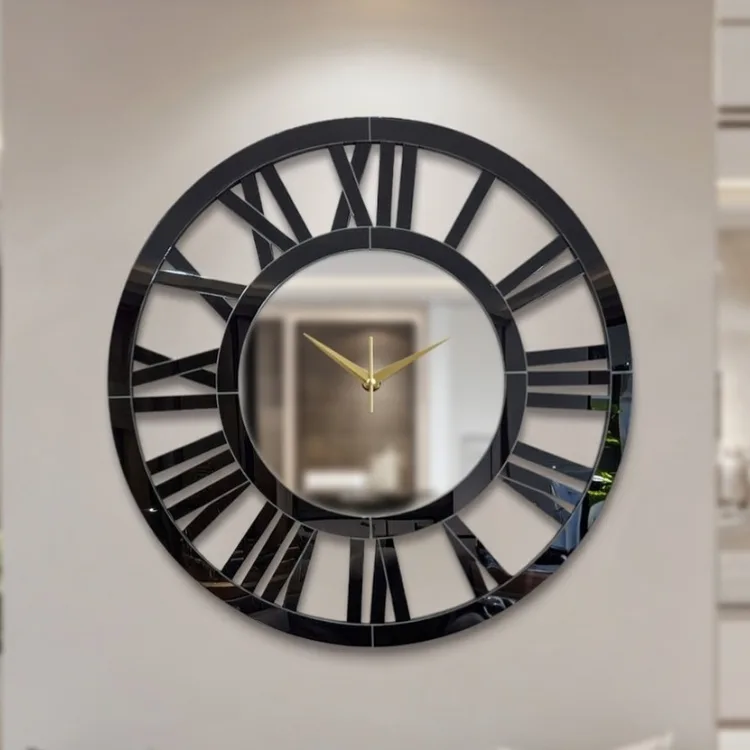 עם מסגרת מעוטרת ספרות רומיות ושילוב של זכוכית מראה בצבע שחור