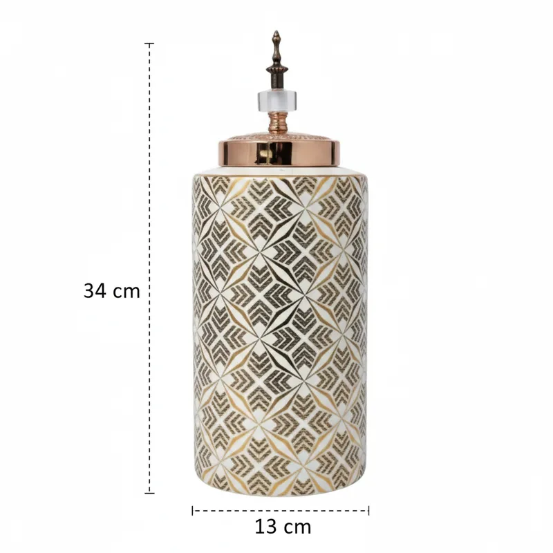 ואזה לבן עיטור זהב + מכסה 34 ס"מ