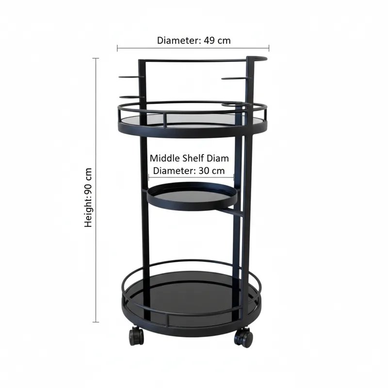 עגלת בר מפוארת עגולה 3 קומות מתכת שחור
