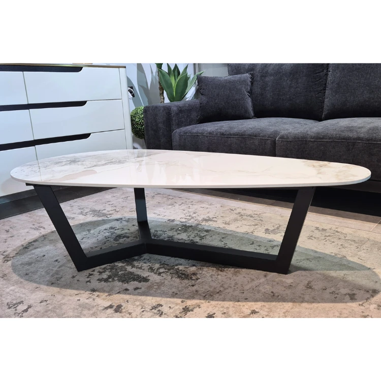 שולחן סלון אליפסה אבן צפחה דמוי שיש