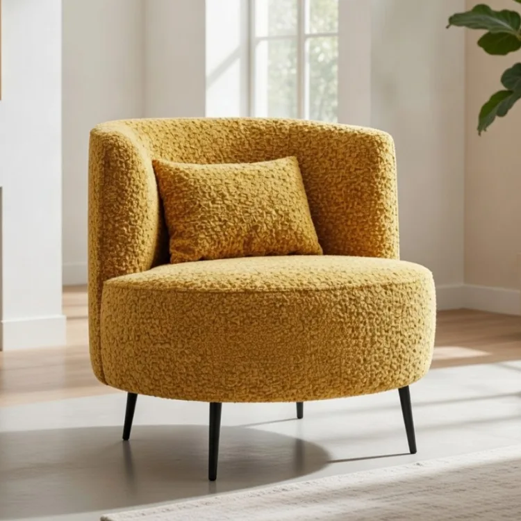 כורסא מעוגלת דגם קומו מבד בוקלה חרדל