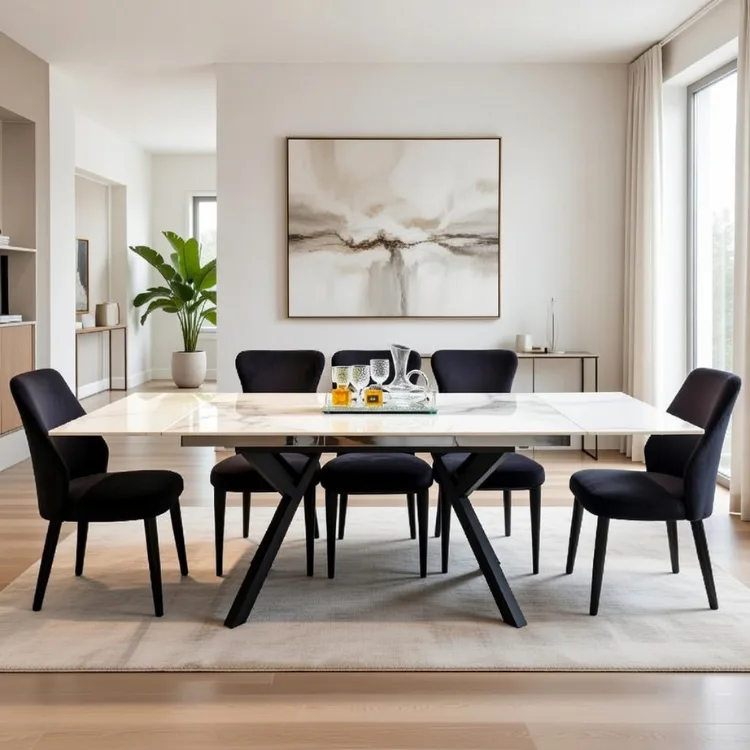 שולחן אוכל נפתח דגם איזבל שחור לבן דמוי שיש