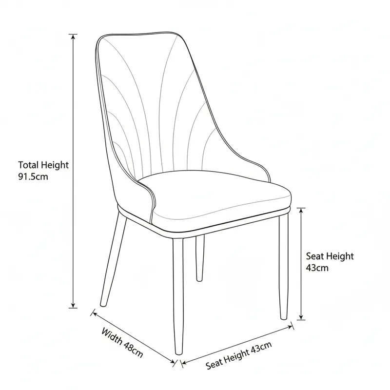מידות : 48 ס"מ רוחב, 43 ס"מ גובה עד למושב ו-91.5 ס"מ גובה מהרצפה עד למשענת הגב.