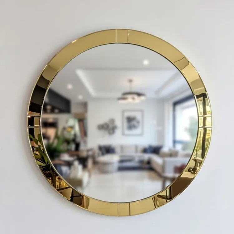 מראת קריסטל בעיצוב מרהיב עם מסגרת מראה מוזהבת, המשדרגת כל חלל בו היא נמצאת.