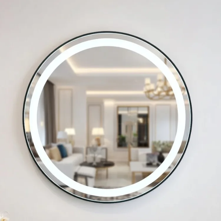 מראה לד עגולה בקוטר 80 ס"מ עם מסגרת שחורה יוקרתית.