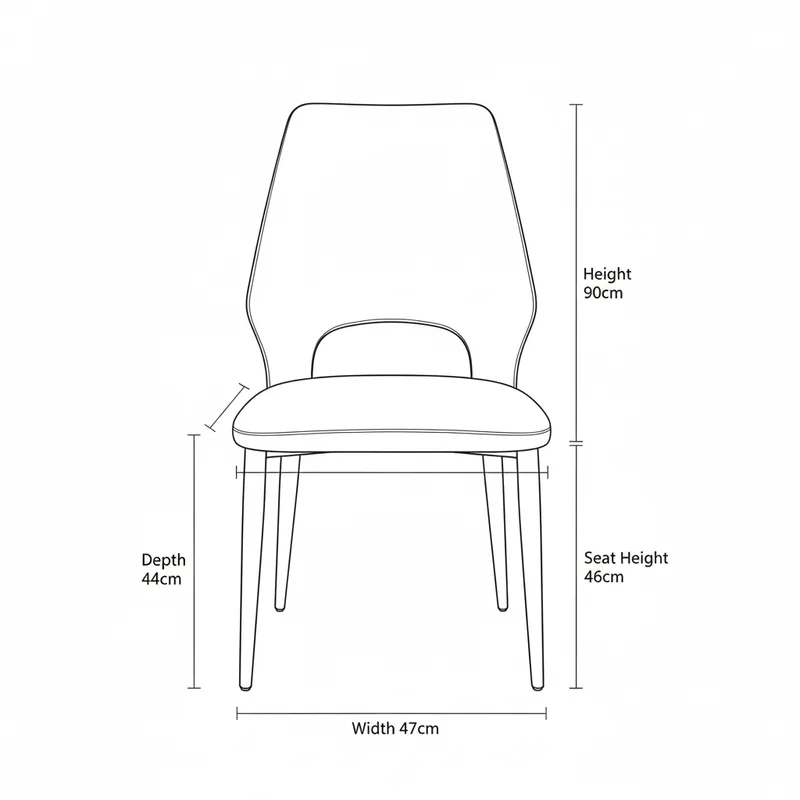 גובה: 90 ס"מ מהרצפה לגב הכיסא | 46 ס"מ מהרצפה עד למושב