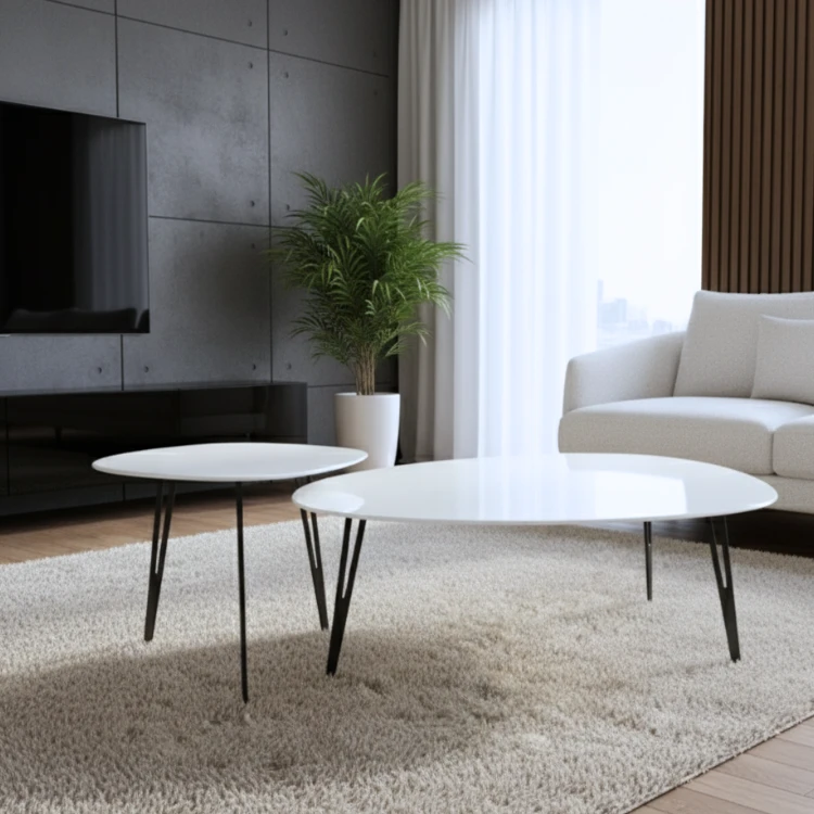 סט שולחנות סלון לבן דגם אליפסה - תצוגה