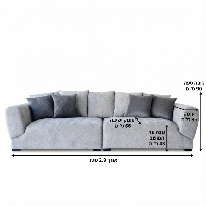ספה דגם מדונה 2.9 מטר בצבע אפור