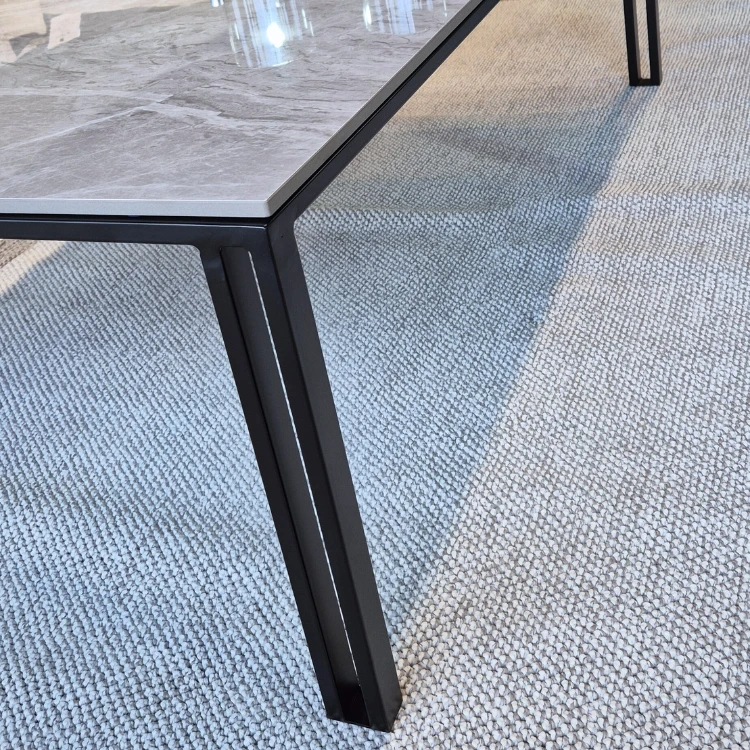 בסיס השולחן ממתכת שחורה איכותית וחזקה במיוחד עם רגל בעלת פרופיל מלבני כפול.