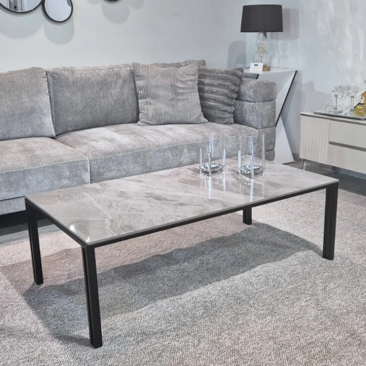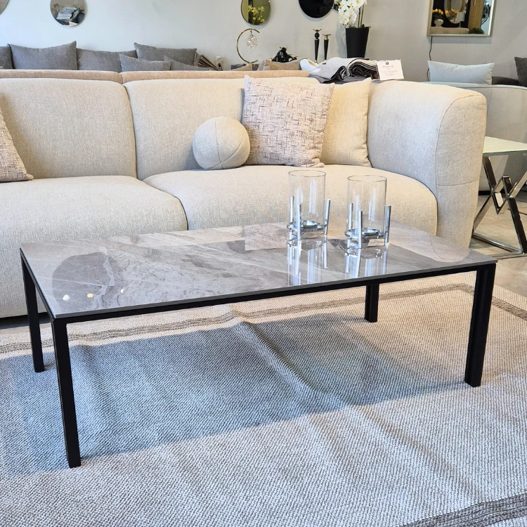 שולחן סלון דגם פסים שחור דמוי שיש אפור
