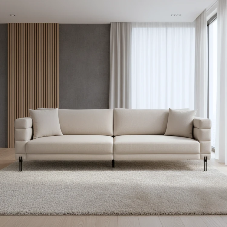 הספה משלבת עיצוב ייחודי עם קווים נקיים ואופקיים, המעניקים לבית מראה אלגנטי ומודרני.