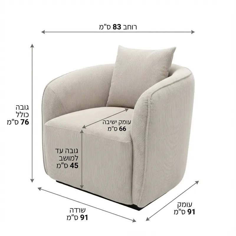 כורסא מעוצבת דגם טורונטו בצבע נס קפה מבד קורדורוי.