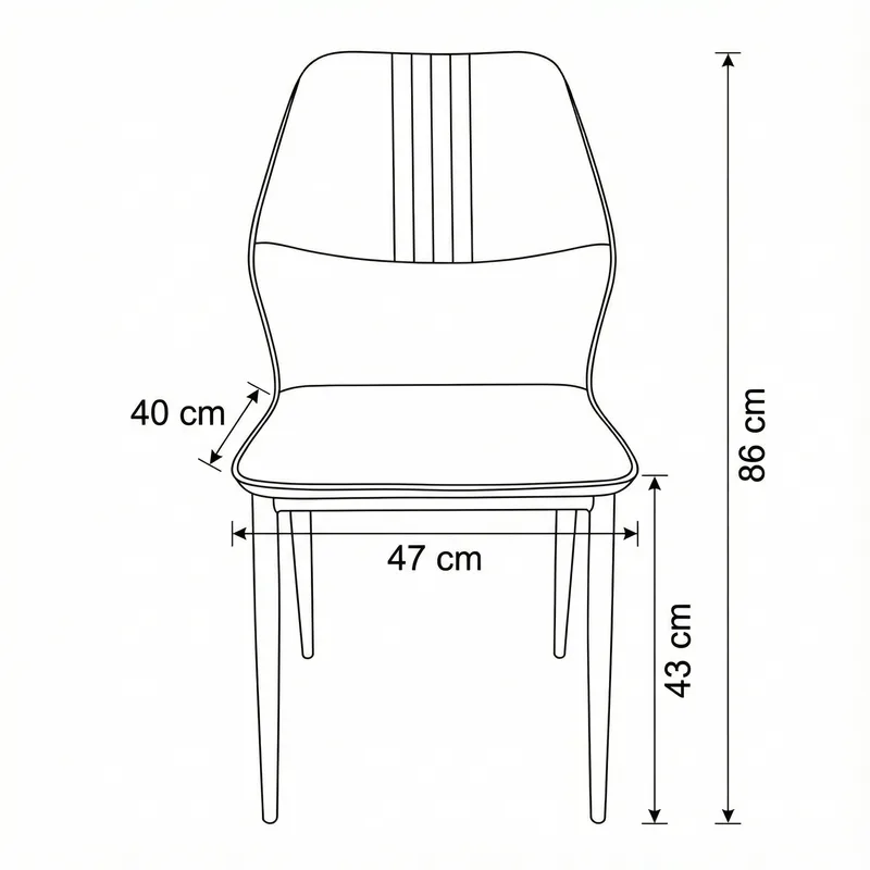 מידות הכיסא: רוחב: 47 ס"מ עומק: 40 ס"מ גובה: ישיבה -43 ס"מ / כולל משענת - 86 ס"מ