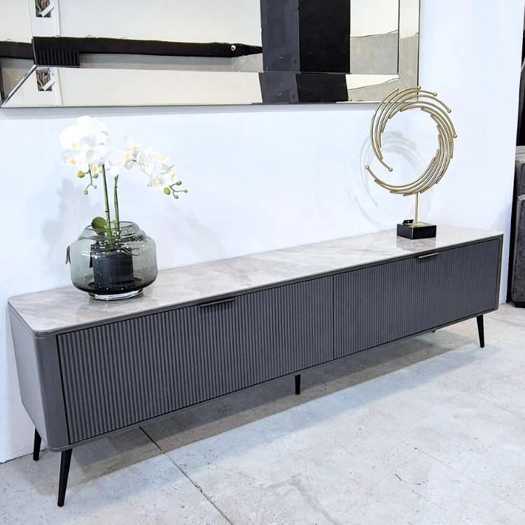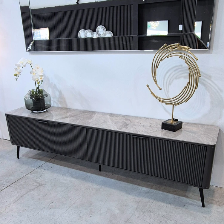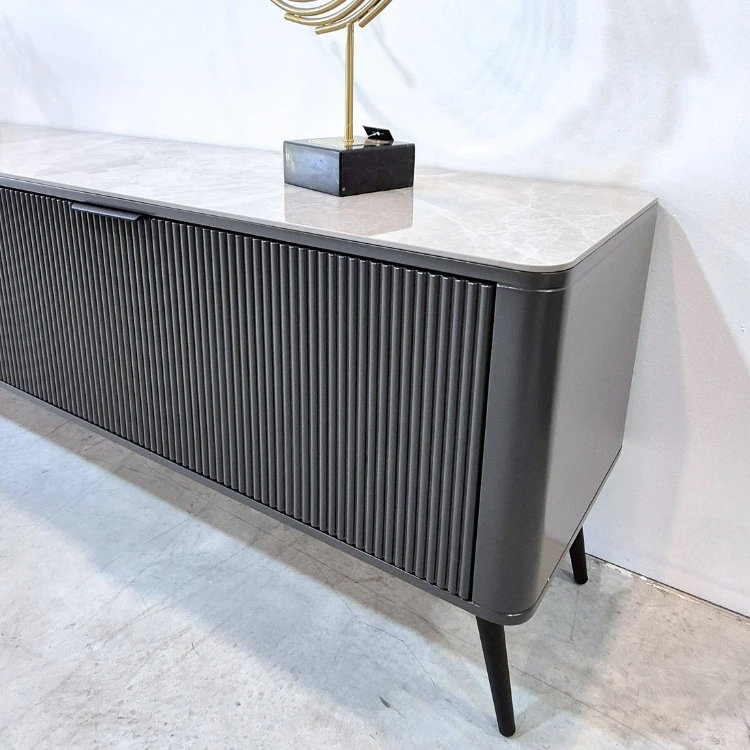 גוף המזנון מעץ בצביעה אפוקסית מיוחדת מחזית מחורצת עדינה בשילוב רגלי מתכת איכותית.