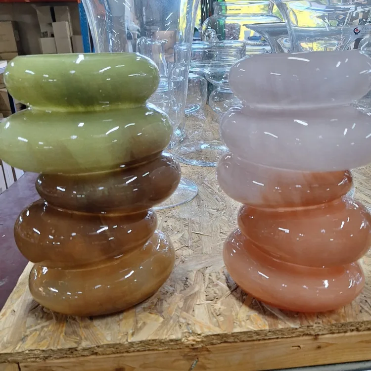 אגרטל זכוכית בעיצוב אלגנטי ועל־זמני, המשלב קימורים רכים עם נוכחות חומרית מרשימה.