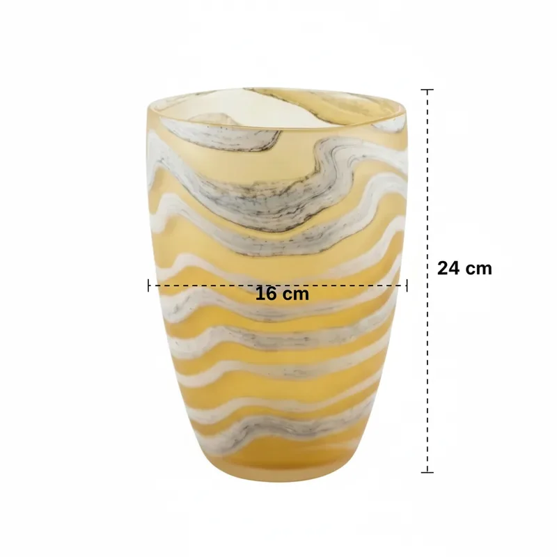 אגרטל מרשים ומאורך בעל טקסטורה בגוונים של צהוב.