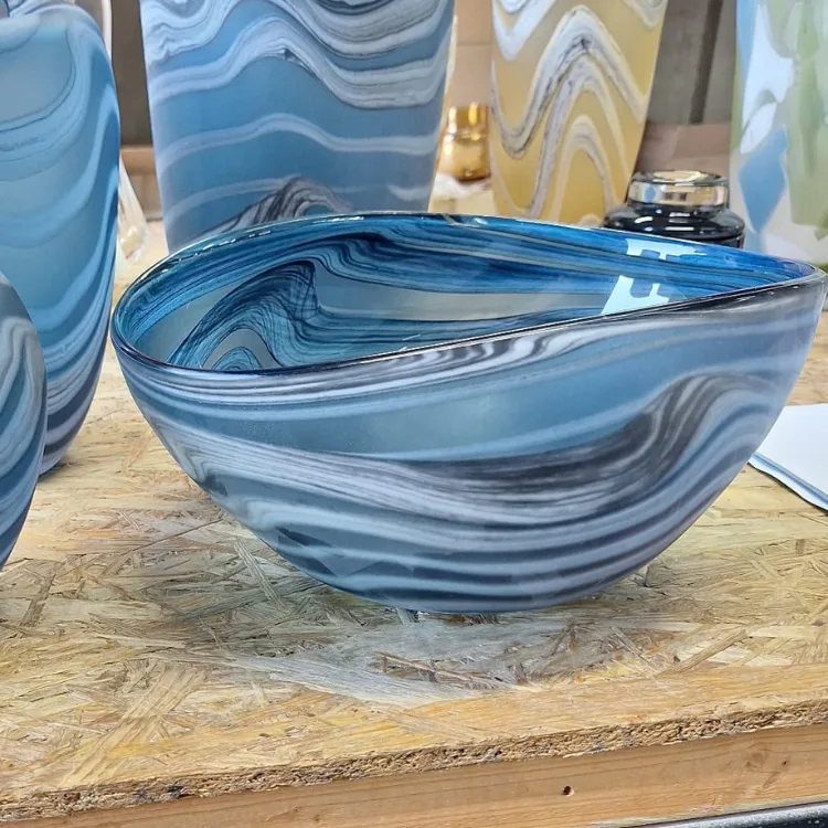 קערת זכוכית אירופאית בעיצוב רך ואסתטי, המשלבת קווים נקיים עם ברק טבעי של זכוכית איכותית.