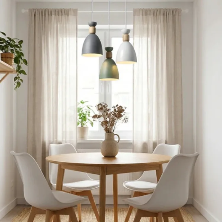 שלישיית אהילים בגימור מאט בגווני שמנת, ירוק בקבוק וגרפיט כהה – המשתלבים בהרמוניה על פס תלייה לבן בגודל 55 ס"מ, עם נגיעה מוקפדת של עץ טבעי שמוסיפה חמימות ואלגנטיות.