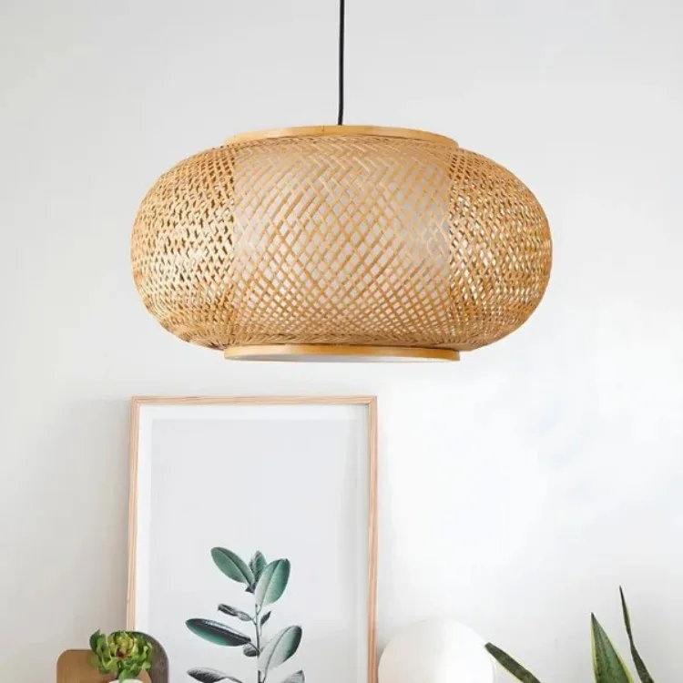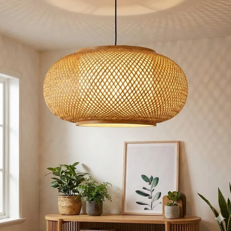 חומרים: במבוק טבעי בגימור עץ בהיר עם כבל תלייה שחור.