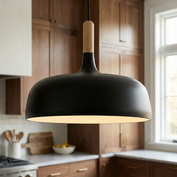 מביא עמו עיצוב מינימליסטי עם נוכחות מדויקת. אהיל בגימור שחור מאט עם תוספת עץ טבעי בגוון בהיר .