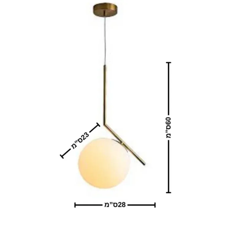 קוטר כדור הזכוכית: 23 ס"מ. גובה תלייה: כבל מתכוונן להתאמה מדויקת לפי שפת העיצוב בחלל.