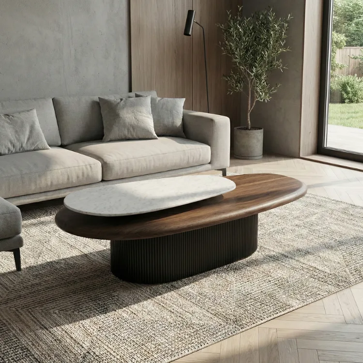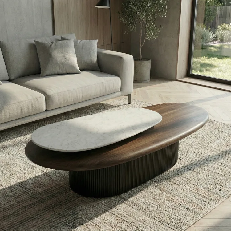 שולחן סלון בעיצוב מודרני דגם אליפסה עץ אגוז.