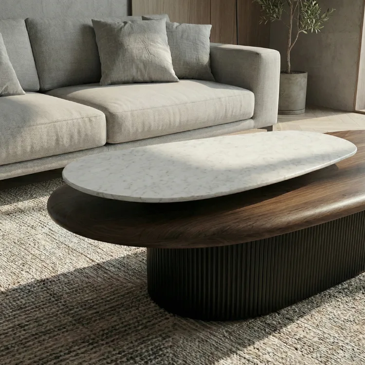 עם פלטת שיש עליונה.הצורה האמורפית של השולחן