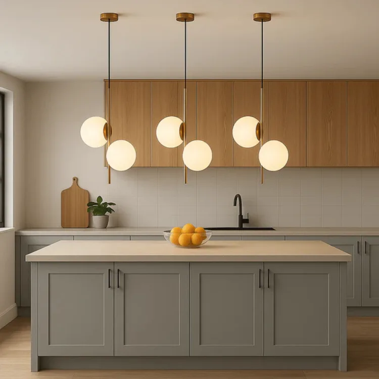 השילוב בין זכוכית חלבית לגוף המתכתי בגימור פליז מט מייצר מראה מודרני-אלגנטי ומעודן.