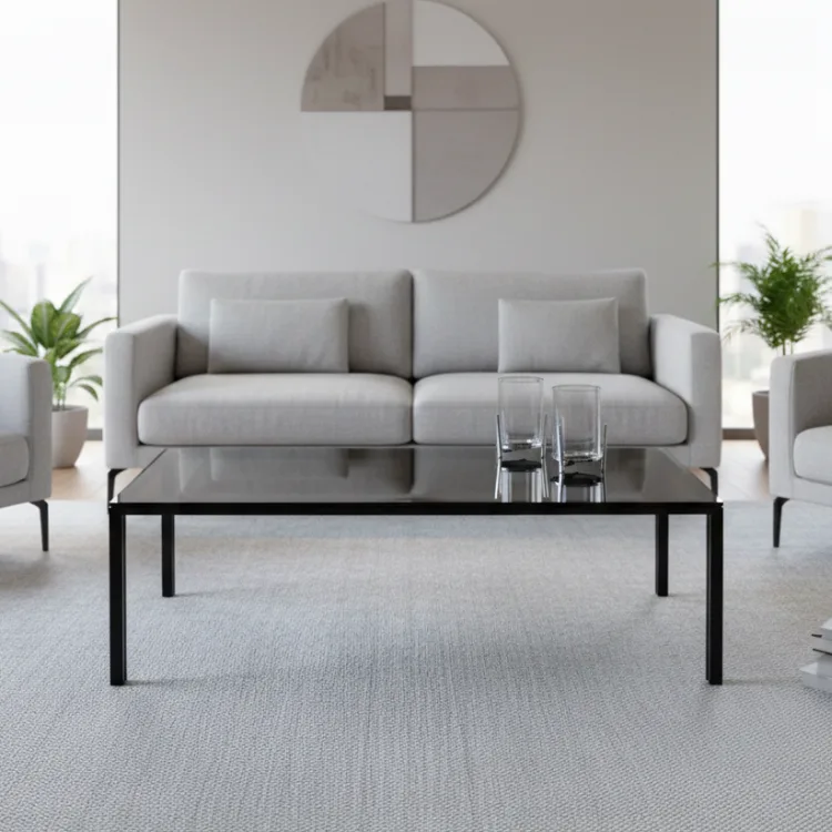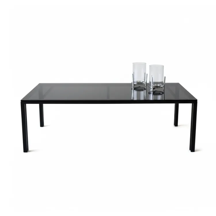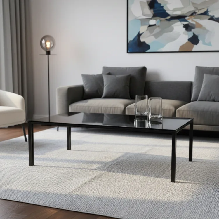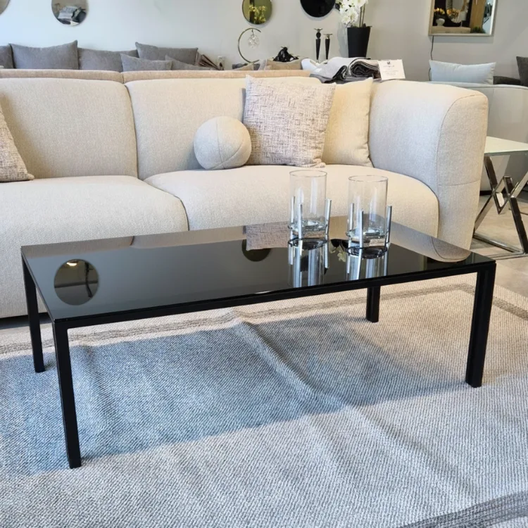 שולחן סלון דגם פסים שחור זכוכית אפור מעושן