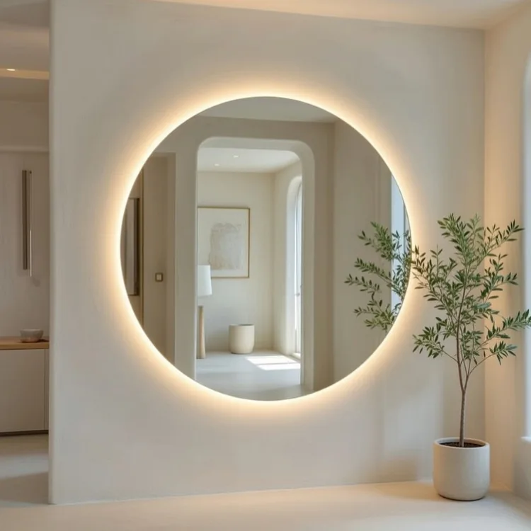 המראה מעניקה תחושת מרחב ויוקרה מאופקת, ומתאימה לכל סגנון עיצובי בזכות הקווים העגולים והנקיים שלה.