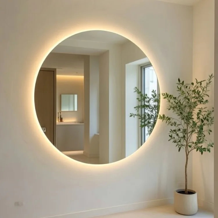 מראה מרחפת מהקיר עם תאורה: מגיעה עם מסגרת ייעודית הכוללת פס לד מוגן מים ושנאי לתאורה נסתרת.