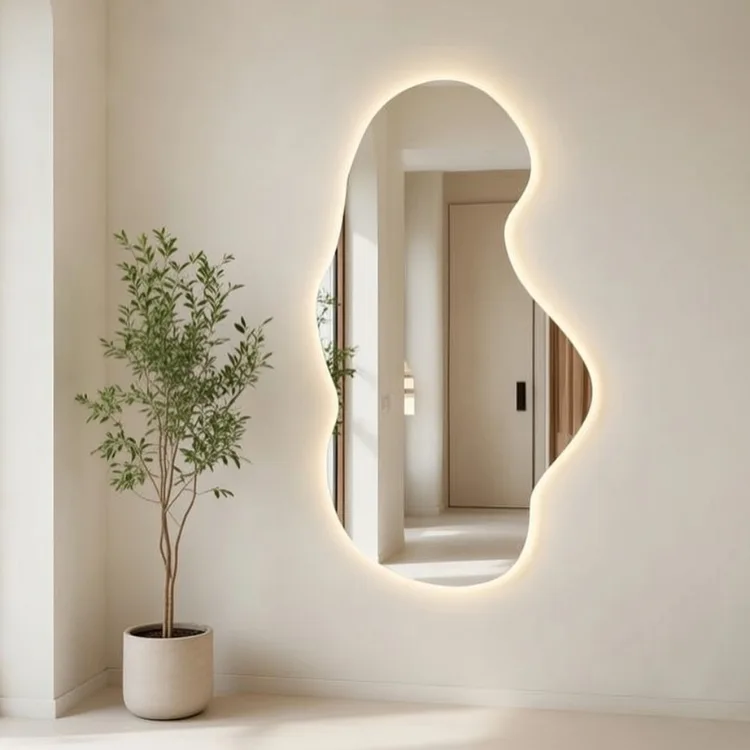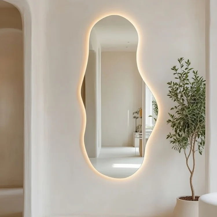 המראה מתאימה לשימוש כמראת גוף מרשימה ומשתלבת באופן מושלם בסלון, בחדר השינה, בחדר הרחצה ובמבואת הכניסה, עם אפשרות לשילוב תאורת LED בהתאמה אישית להדגשת הצורה האמורפית הייחודית.